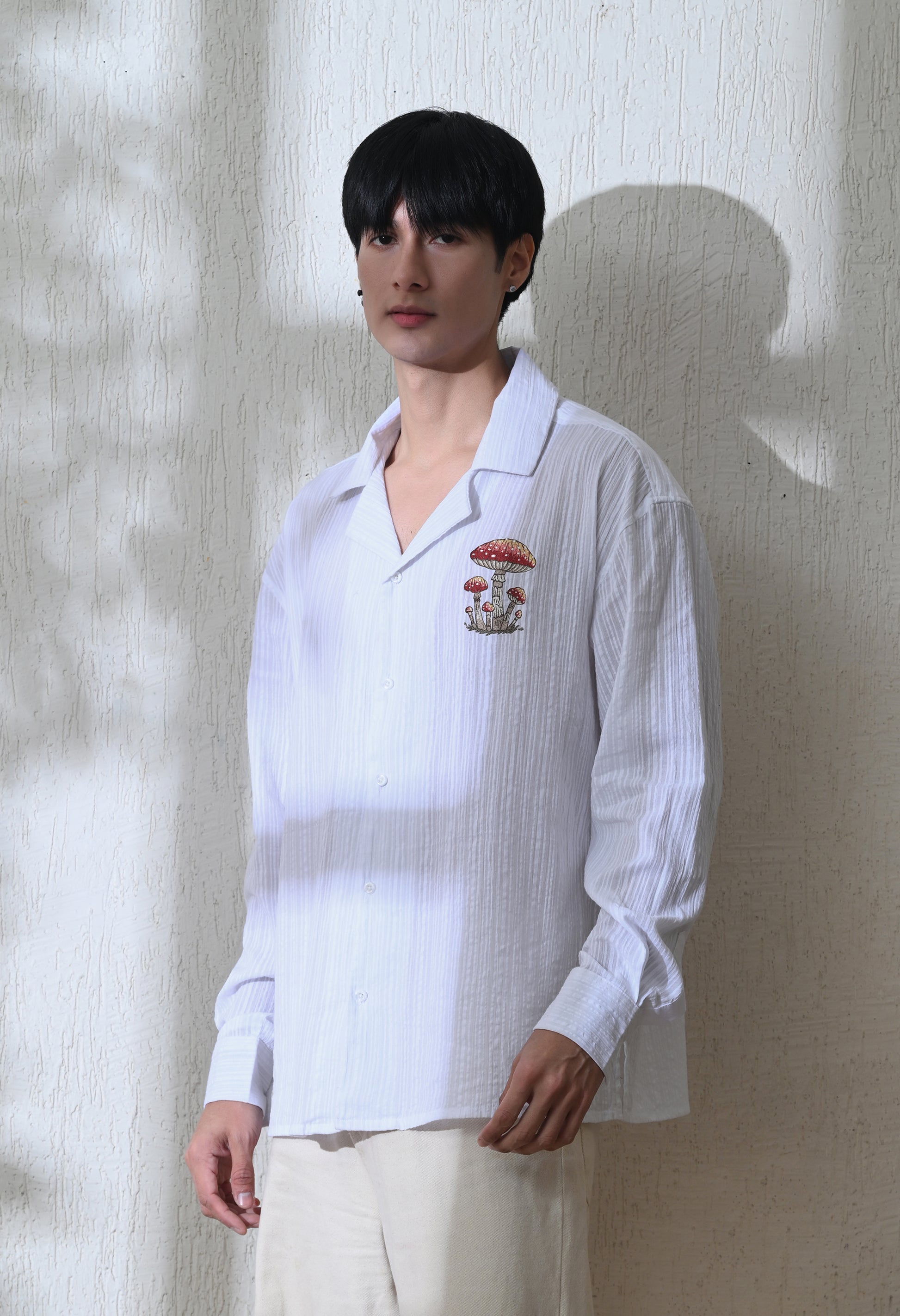 White Mushroom Tales Embroidered Shirt